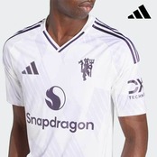 ■マンチェスター・ユナイテッドのクールなアウェイユニフォームが、新鮮なルックスに。90年代初期の雪の結晶模様のジャージーの影響がひと目でわかる、新しいユニフォーム