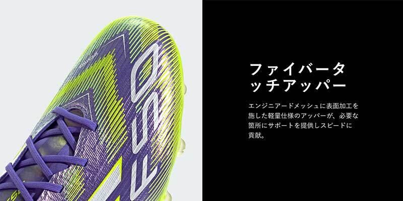 ■薄いファイバータッチアッパーに、足にボールが吸い付くようなスプリントウェブ 3Dテクスチャと、足がブレないようにホールドするコンプレッション フィット トンネルシュータンを採用した、超軽量Eliteサッカーシューズ。