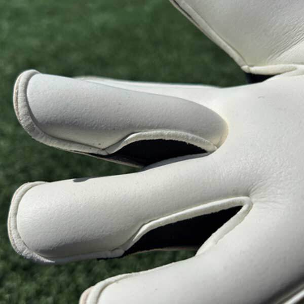 ■親指はフラットカット。パワーの出る親指はあえてボールへの接地面を拡大したフラットカットを採用