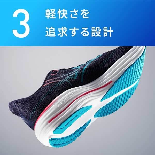 ソールの波形構造により、クッション性と安定性を両立させるミズノの基幹機能