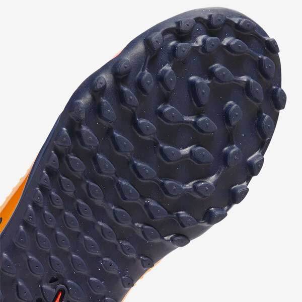 エンジニアードメッシュを使用したNikeSkinのタッチゾーンを拡大し、足とボールの距離を近づけます。 濡れた状態でも乾いた状態でも、ドリブルやパスでのボールコントロールが向上します