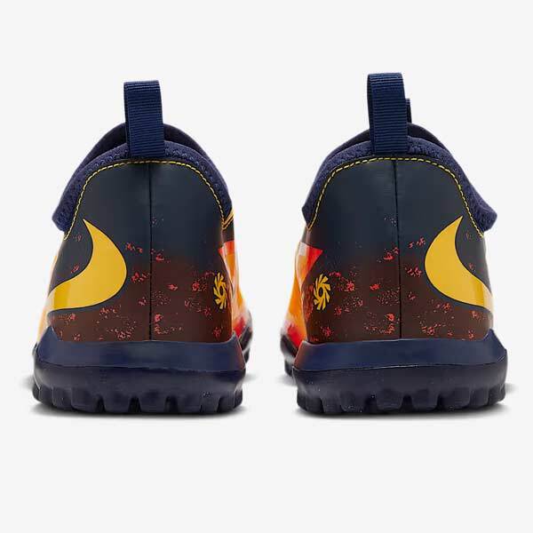 ■ヒールとコア部分の内なる炎のカラーはブルーからスタート。決定的な場面でも落ち着きを保つアーリンの冷静さを表しています。 そのブルーはレッド、イエローへと変化し、アーリンの心理を表現するとともに、多くのゴールを生み出すシューズの最も輝く部分を際立たせています。