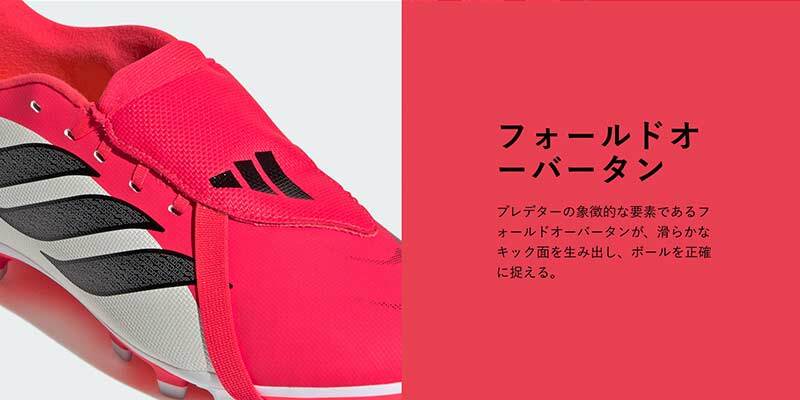 ■アイコニックな折り返し仕様のシュータンが滑らかな打撃面を作り出し、正確さとパワーをもたらす。ソフトな合成素材のアッパーは、快適さと共に、グリップ力を高めるテクスチャーをプラス。