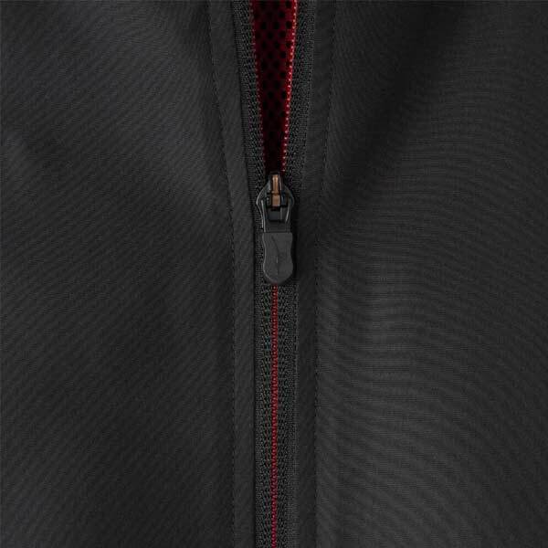 ■全体としてシックなデザインに仕上げ、ガンメタ調の立体ランバードマークと、赤いスプリットファスナーがアクセント。